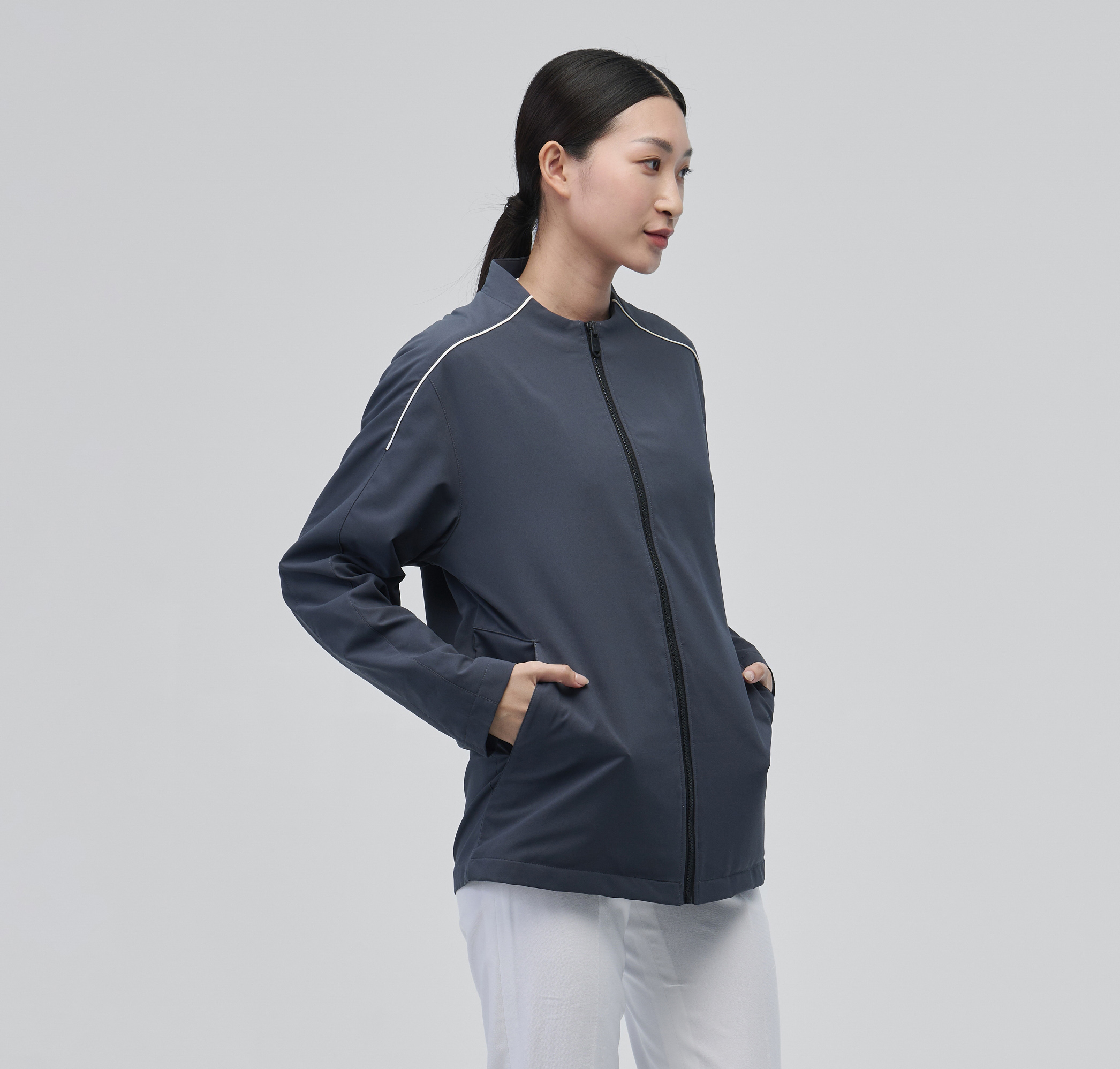 率性百搭的簡單設計,展現時尚休閒的運動風格 此為吸濕速乾MIT彈力布料,觸感舒適柔軟 新版外套設計背後增加了雨遮功能